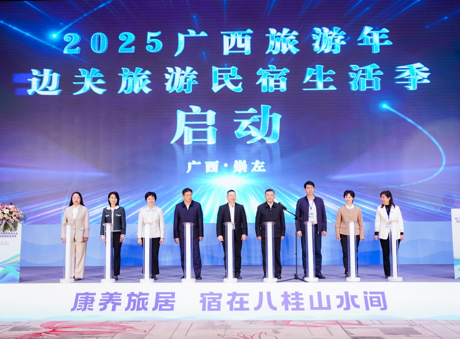 大会以“康养旅居·宿在八桂山水间”为主题,通过主旨演讲、项目签约、产品展示、跨界联动等多元形式,展现旅游民宿发展新成果,助力乡村振兴,推动中越边关风情旅游带和文化旅游强区建设。