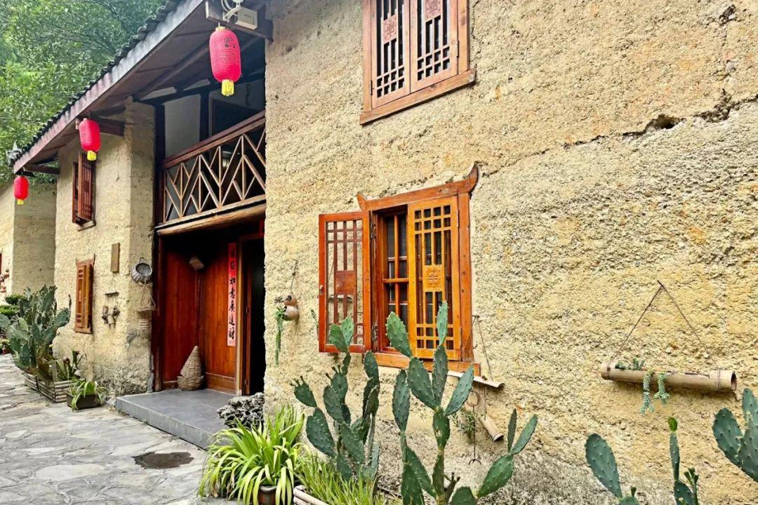 酒店由瑶民泥巴房子改造而成,建筑为土木结构的传统形式,呈台地式白裤瑶族村寨形式布局,泥墙瓦顶,绿色环保,冬暖夏凉。
