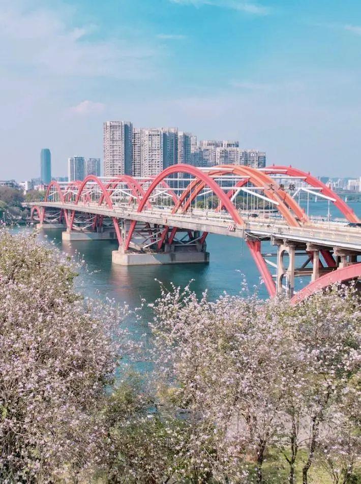 ●文慧大桥、文庙、水南路:地点集中,老牌紫荆花观赏地,适合航拍,以文慧桥为背景,还能在此看日落。