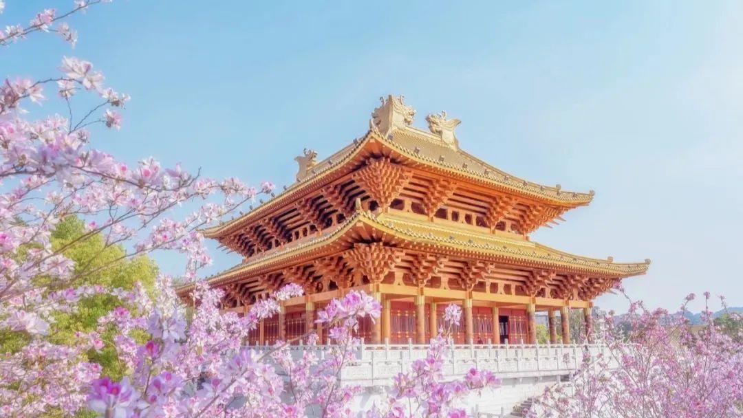 文惠路连着文惠桥,桥的另一头,金碧辉煌、人文底蕴浓厚的文庙,也和春日的浪漫相遇。