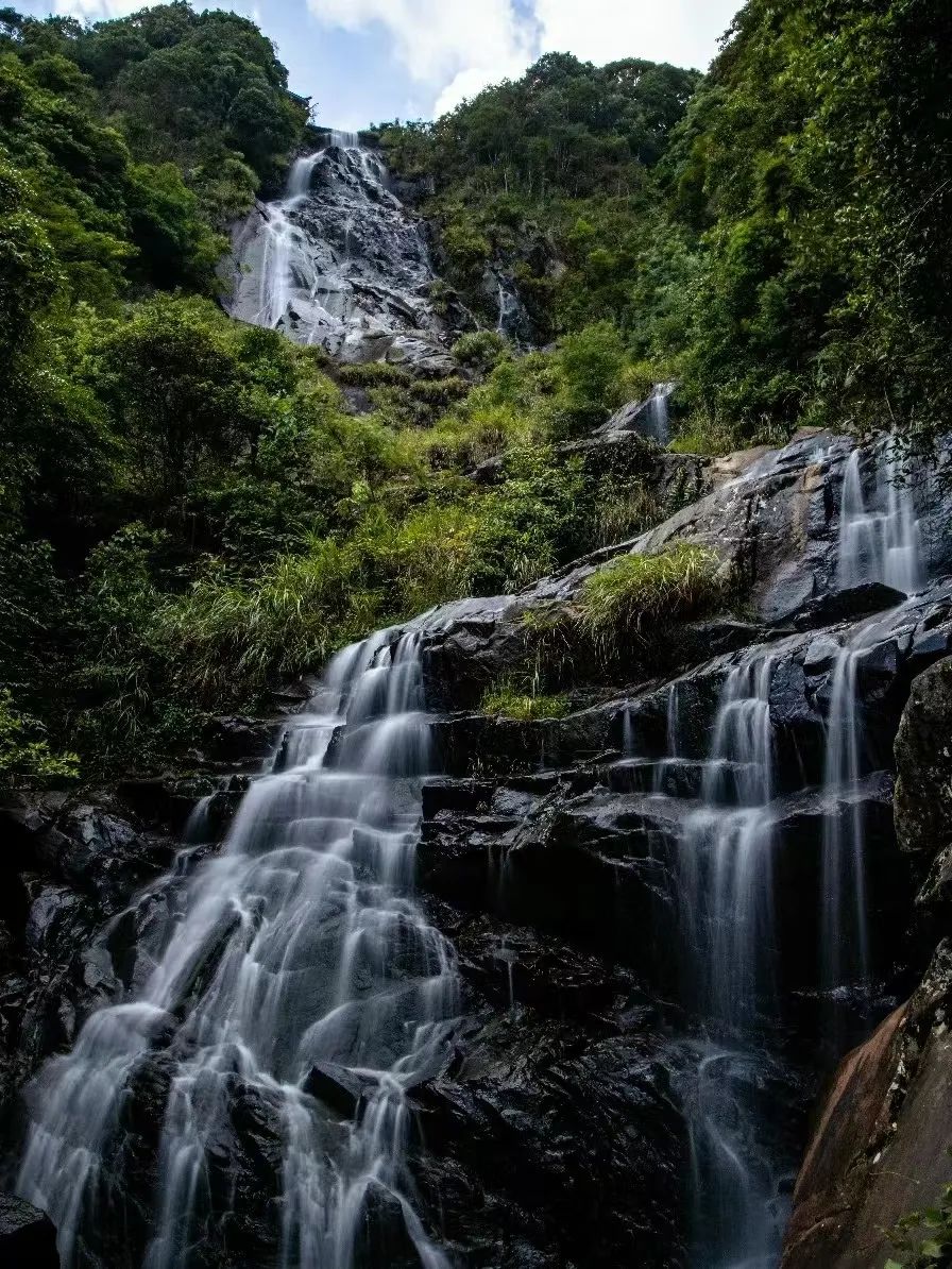 大容山山高林密,云雾缭绕,潭瀑密集,有高山湖泊十多个,溪流几十条,瀑布上百处,其中最为壮观的莫过于海拔1000米的莲花瀑布。
