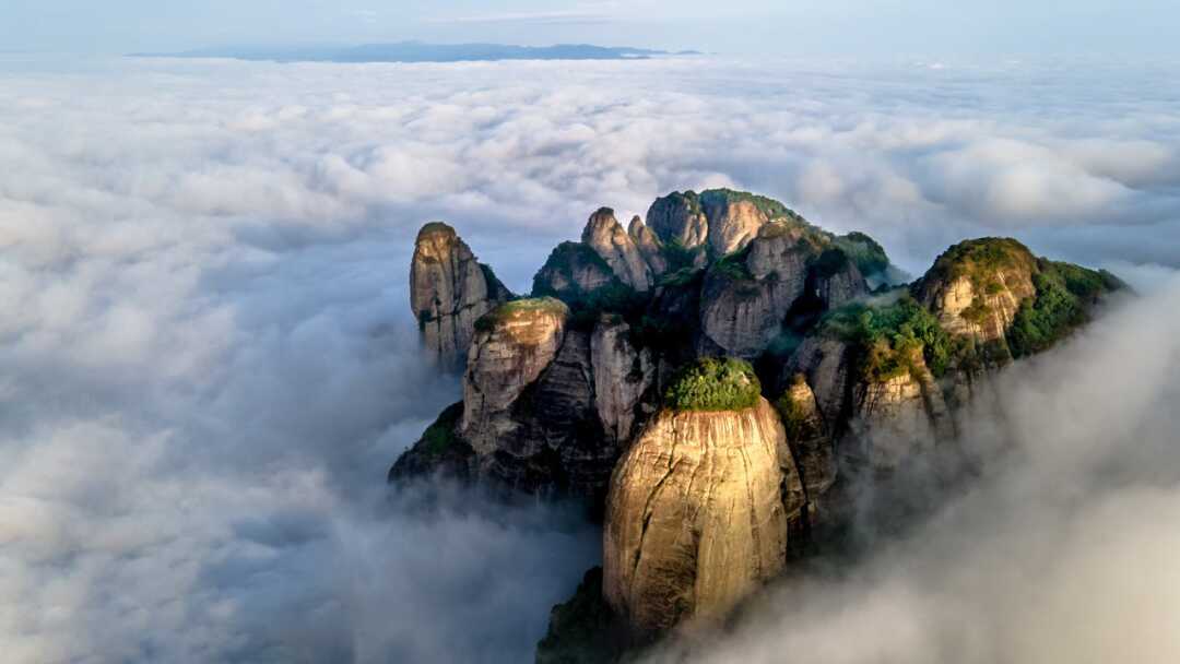 身处高山之巅,看庆寿岩云海翻涌,不由得感叹:“不觉云海深,都峤戏群鸿。”