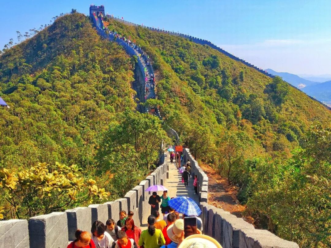 坐落在陆川县沙坡镇高庆村的龟岭谷生态旅游景区,山清水秀,峰奇岭异,重峦叠嶂,奇特的八字岭观光长城盘旋于崇山峻岭之间。
