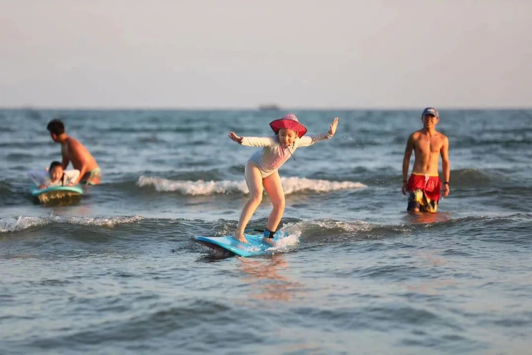 随波逐浪,快速滑行,在这里,冲浪者在海面上逐浪的潇洒身姿也是一道亮丽的风景线。