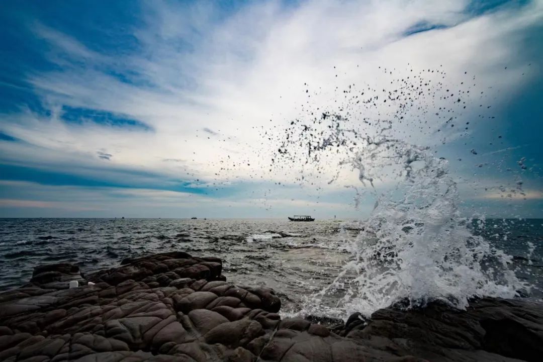 涨潮时,更可观赏到"乱石穿空,惊涛拍岸,卷起千堆雪"的壮观场面。这里不是苏东坡笔下的“赤壁”,却是无数旅人公认的“海上赤壁”。