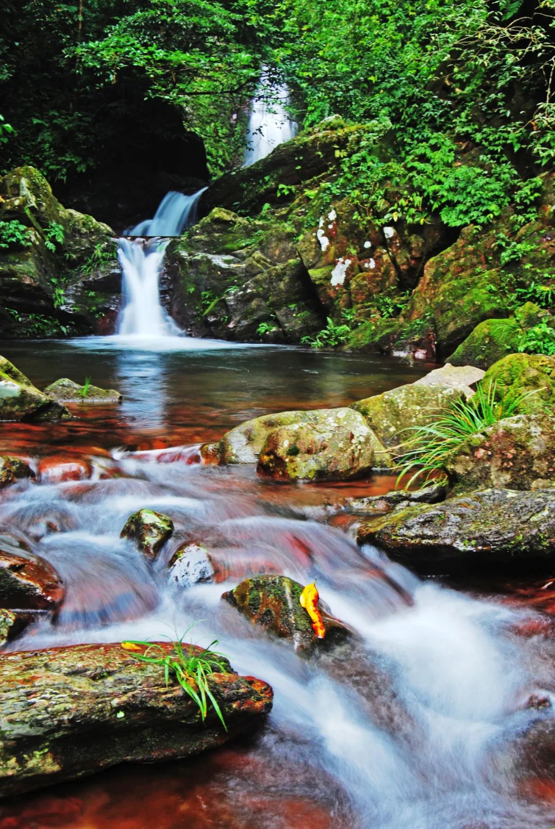 十万大山国家森林公园幽静舒适,青翠茂密的树林是天然的遮阳伞,身边流水潺潺是天然的中央空调,是游客们理想的避暑胜地。