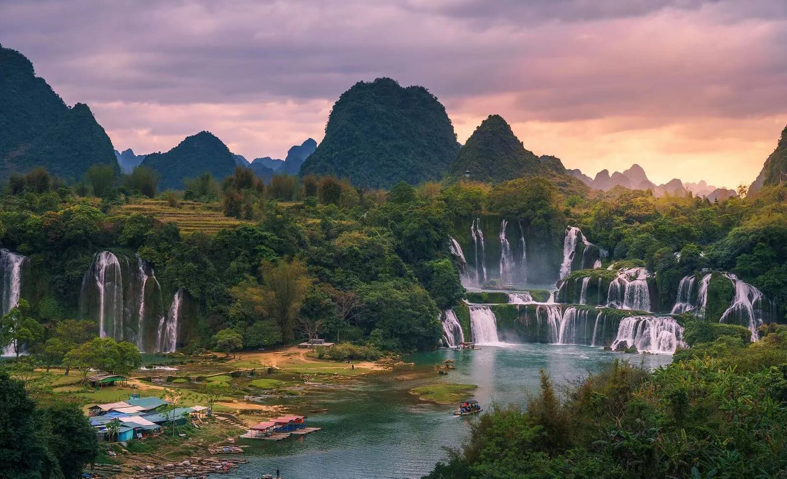 德天瀑布层层叠叠的水帘,不动声色地演绎诗仙李白笔下“飞流直下三千尺,疑是银河落九天”的气势磅礴。
