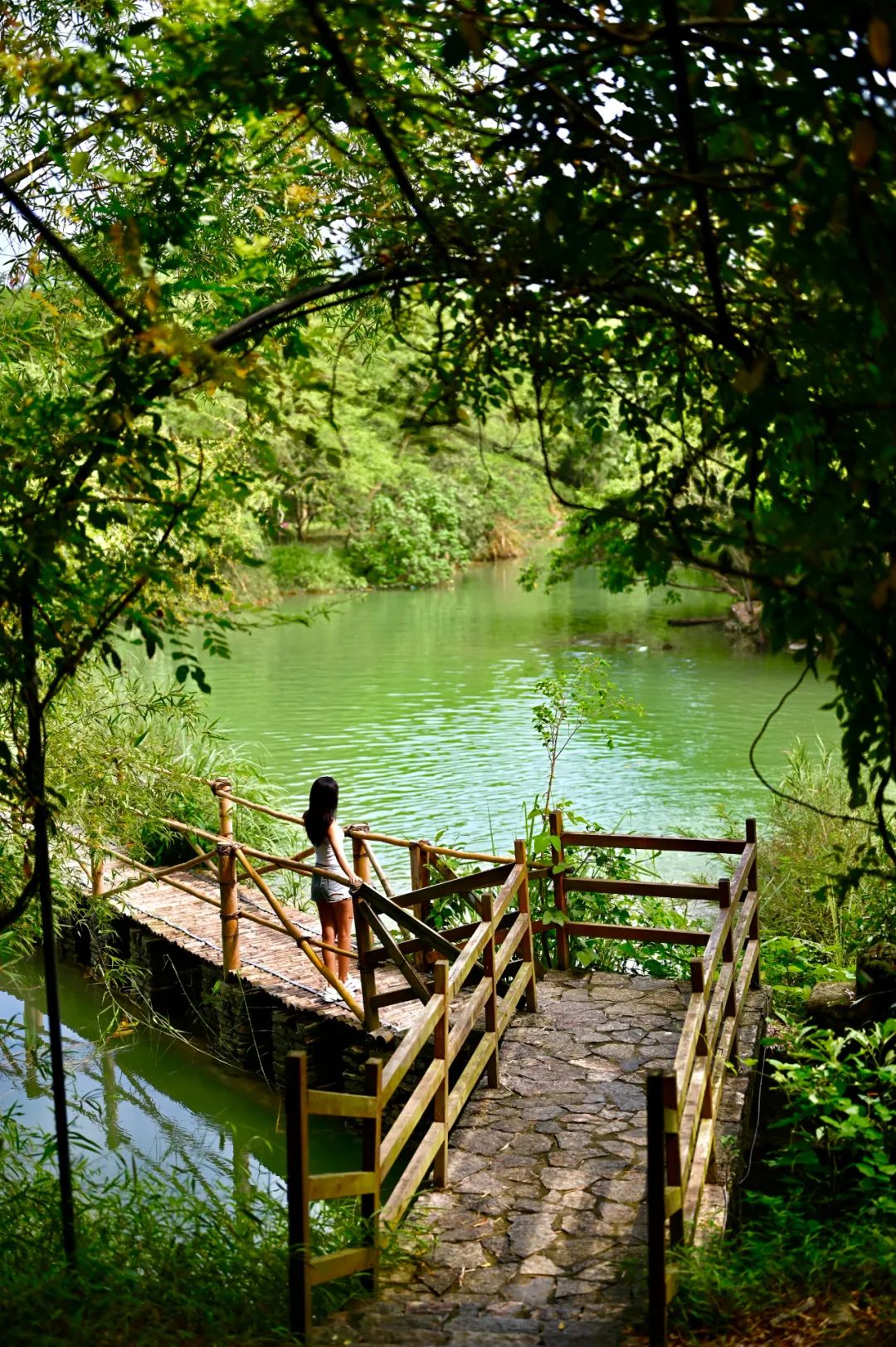 邀阵阵清风,感受群山环抱,在翠竹绕岸的河堤,做一回坦荡自由的田园之子。