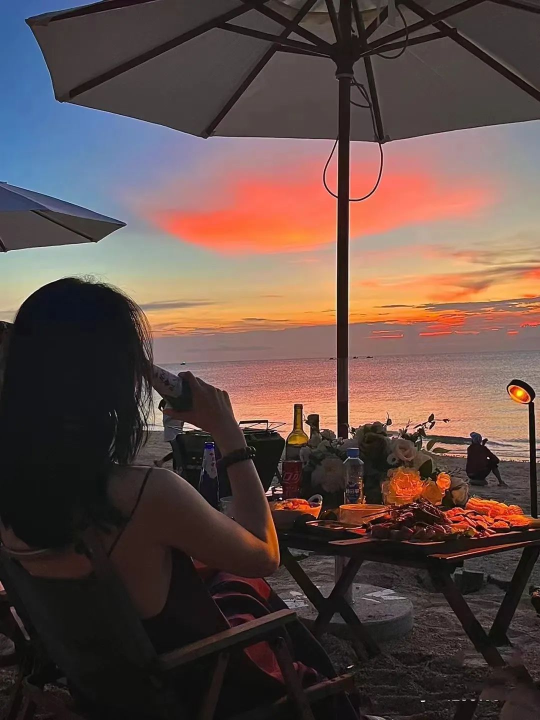 ●傍晚,滴水丹屏海滩的海景餐厅是欣赏涠洲岛最美日落的绝佳去处;