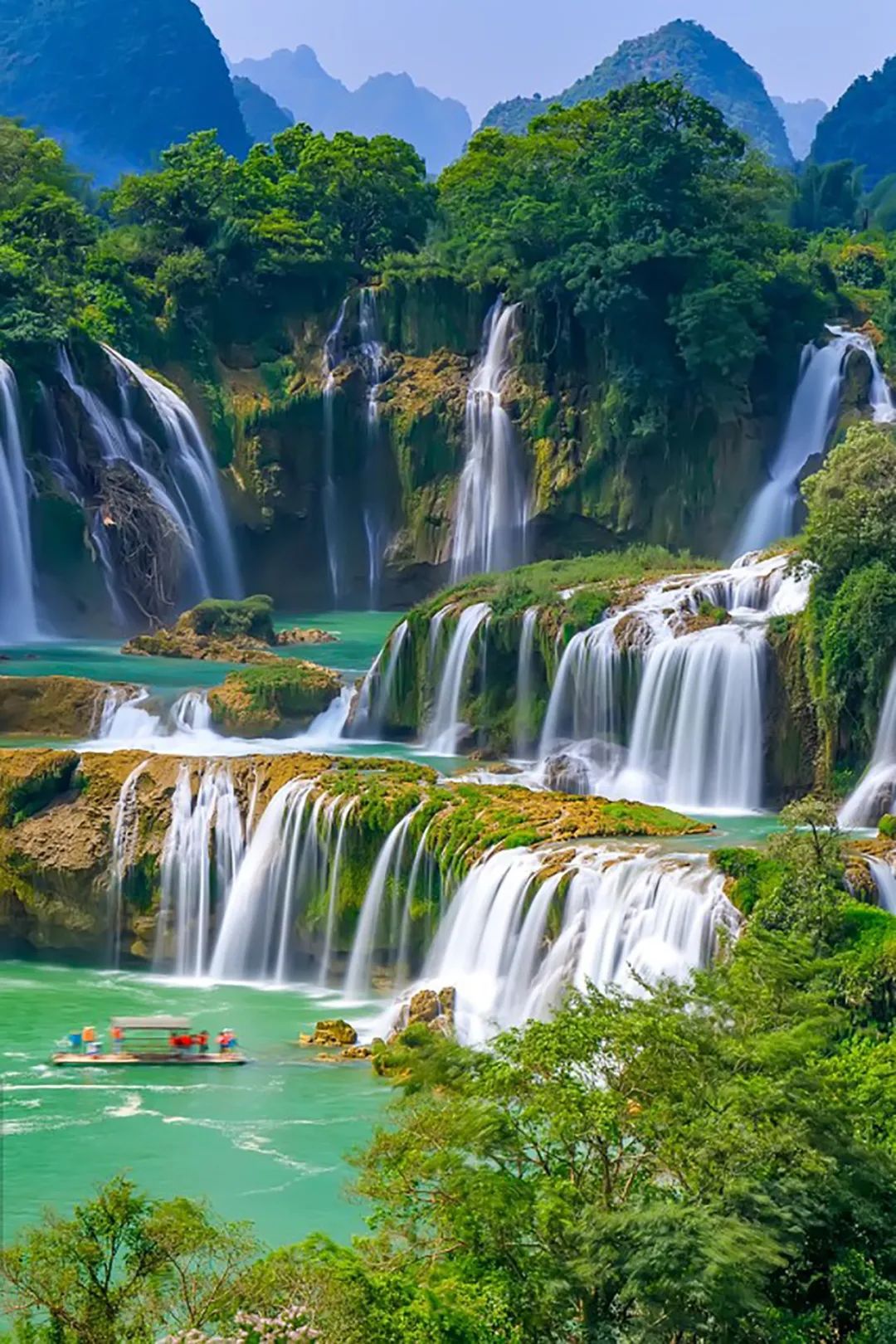 ●沿着中国边关风景大道去往德天瀑布景区,可徒步、乘舟临瀑近观,也可登亭席地品茶远观;