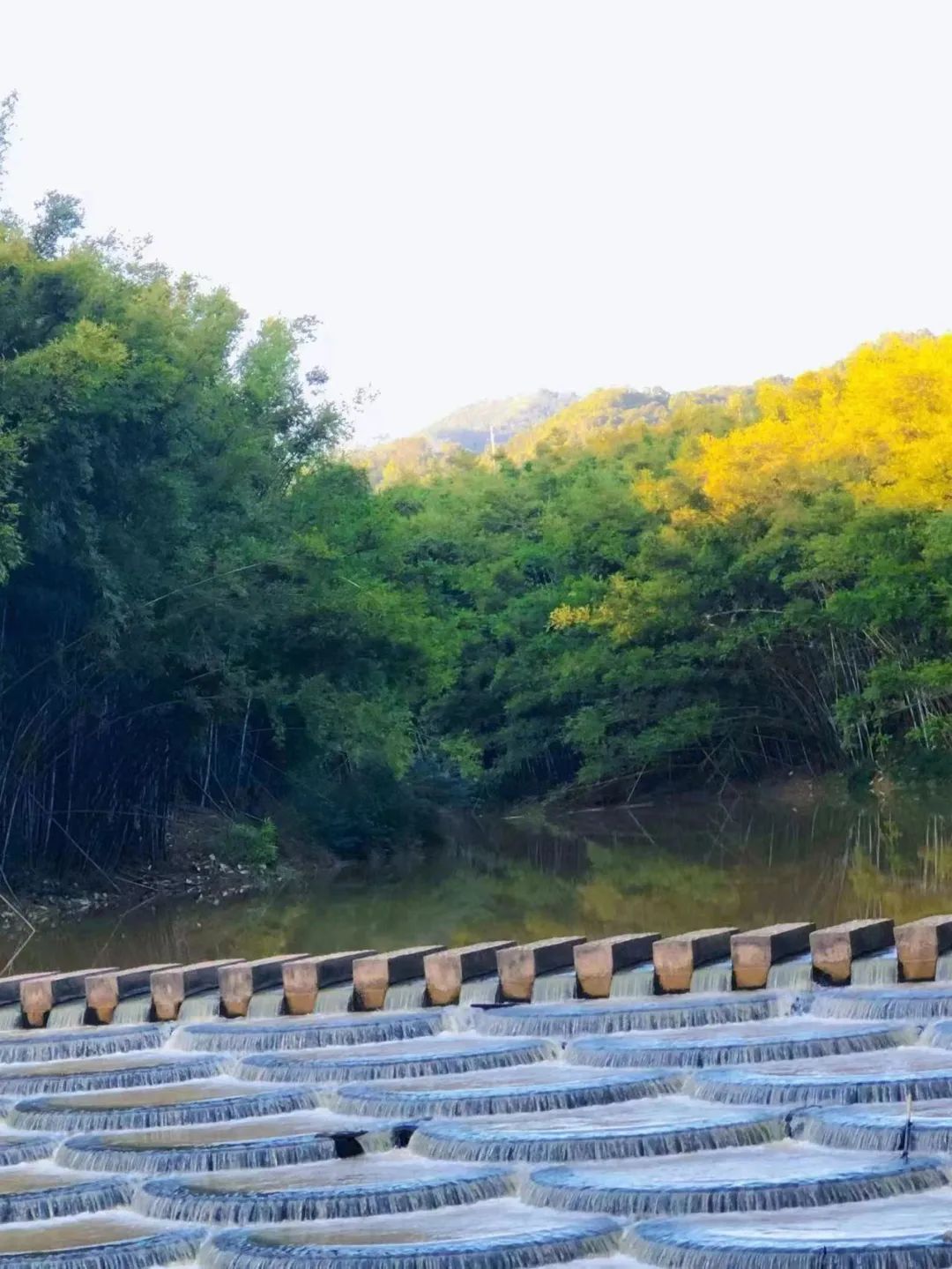 在这里不仅可以亲自体验采茶过程,还能够跟着六堡茶非遗传承人一起感受制茶的乐趣。就着新做好的茶叶,沏一杯香气四溢的新鲜六堡茶,享受着茶汤带来的醇厚顺滑。来到六堡镇,深入了解茶文化是首选,但是用茶制作的美味可不能错过,在六堡镇有一条街专以茶命名,值得去逛一逛。一来到巷口就能闻见街道内飘来淡淡茶香,大大小小的茶铺立在两旁,三三两两的茶几置于街边,几人围坐,茶香缭绕。随意挑一家茶馆喝一碗红浓陈醇的六堡茶汤,抚慰一天的舟车劳顿,消乏安神,是一件再惬意不过的事了。光喝茶不过瘾,还可以品尝这里最具六堡本地特色的茶叶鸡和茶叶蛋。六堡茶的醇厚芳香浸润到了鸡肉中,鸡肉的鲜美跟六堡茶的醇香融合,鸡肉酥软仿佛入口即化,鸡汤浓而鲜美,食之香醇可口。陈年六堡茶煮出来的茶叶蛋,茶香浓郁,蛋香四逸,不苦不涩,色泽均匀,卖相极佳。除了吃喝玩乐,在六堡镇还有更独特的自然风光等你来寻。离开茶街向大中村方向前进,到龙鳞坝,看流水潺潺,波光粼粼,岂不妙哉!