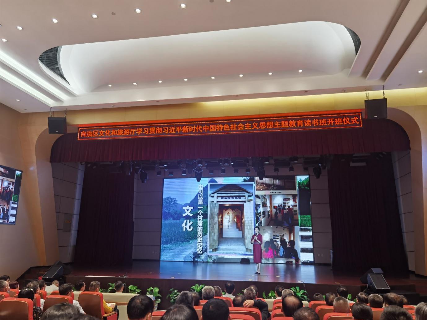 开班仪式还充分展现了区直文化旅游系统资源优势,先后以《推进文化自信自强,构筑中华民族共有精神家园》和《尺素扬八桂 丹心铸忠魂》为题,通过沉浸式讲述,以小见大地讲透党的理论、讲明责任担当,进一步擦亮党员干部的初心本色, 坚定不移地用习近平新时代中国特色社会主义思想凝心铸魂,切实做到学有所思、学有所获、学以致用、学有所成,担当作为、守正创新,为加快推进广西文化旅游高质量发展做出新的更大贡献。