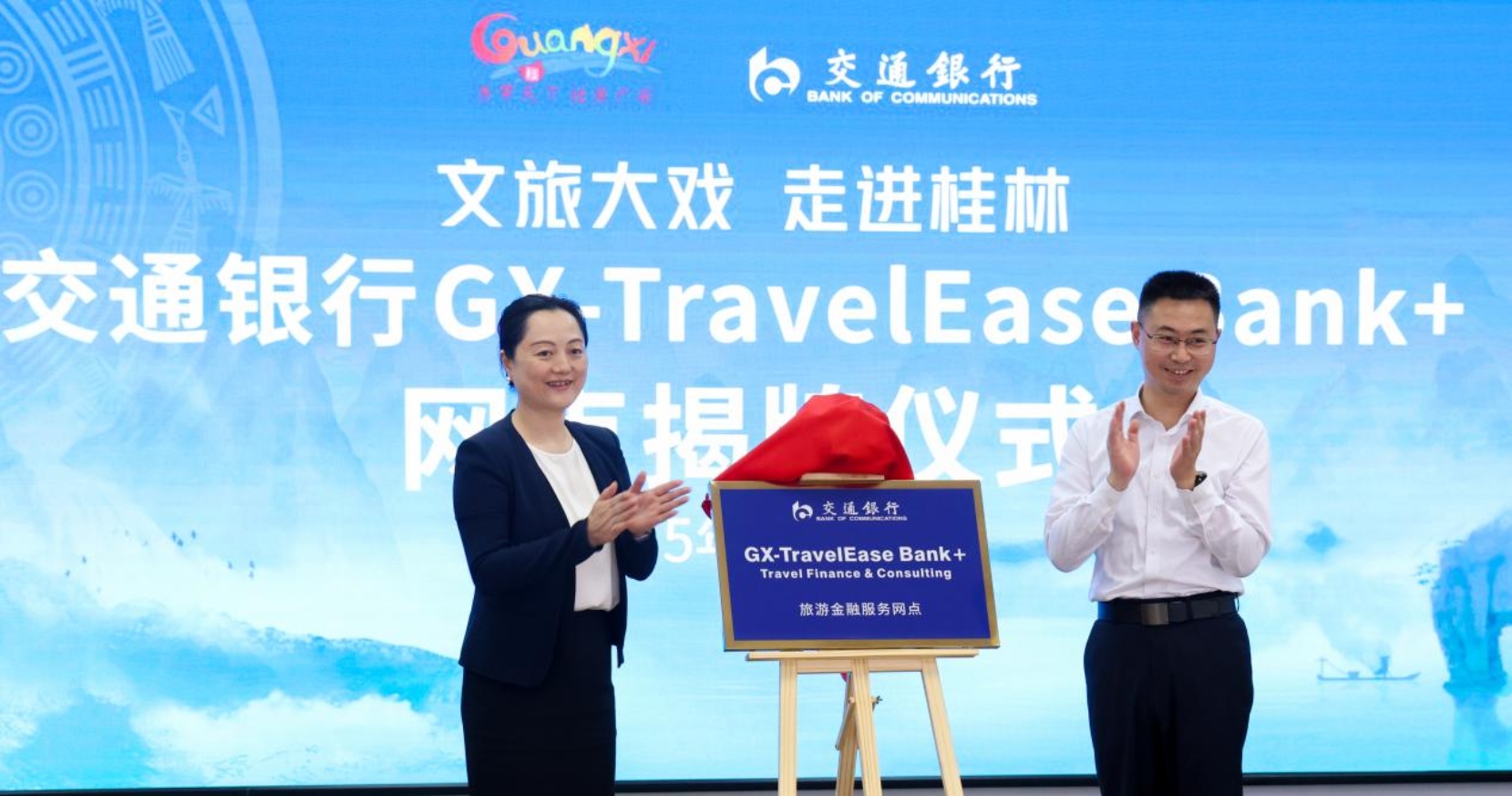 随后,自治区文化和旅游厅与交通银行广西区分行就入境游广西支付无忧服务合作进行签约,并为交通银行桂林分行营业部“GX-TravelEase Bank+”旅游金融服务网点揭牌。
