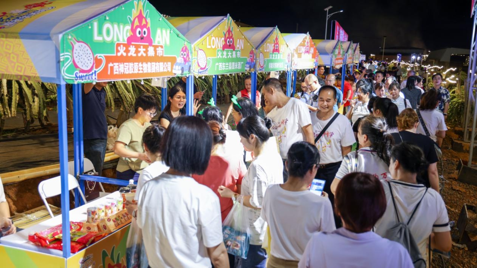 活动现场的火龙大市集人气爆棚。来自广西各地的特色农产品、手作工艺品与创意产品集中亮相,让整个现场“桂味”十足。
