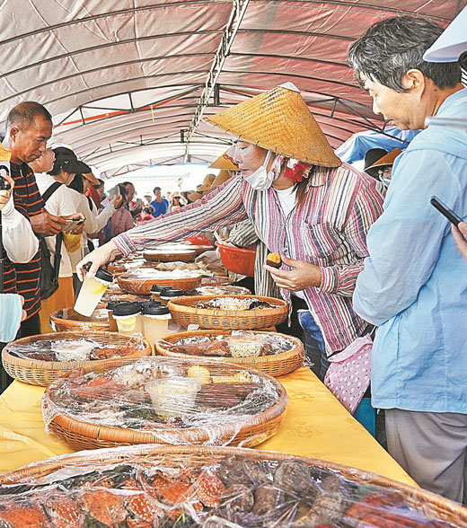 开海嘉年华期间,侨港风情街和开海集市人潮涌动。炭烤生蚝、清蒸石斑、油爆大虾、香辣螃蟹……各类海鲜美食让人应接不暇,多元风味在味蕾上跳着探戈,点燃游客消费热情,许多餐馆座无虚席,门口还排起长队。
